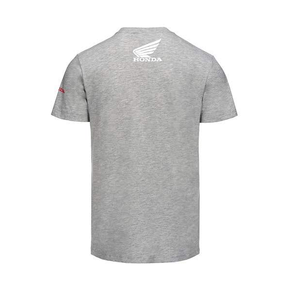 Comfortabel en zacht officieel HONDA T-shirt van 100% katoen in grijs, met het HRC-logo op de voorkant. Dit officiële T-shirt heeft een ronde hals en een klein HONDA-logo op de mouw en rug.