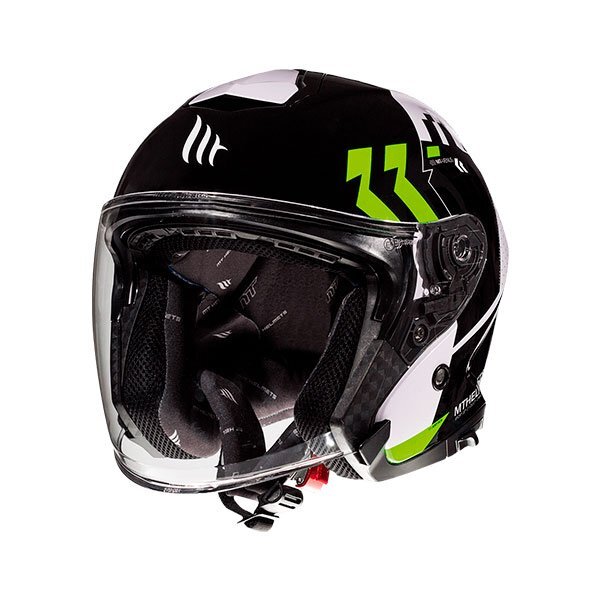 Gereviseerd, in originele doos, ongebruikte helm, heeft wat vlekken op de witte lak en een klein krasje. Het Spaanse merk plaatst MT jetmotorhelmen bovenaan het assortiment, met hun aerodynamische ontwerp en anatomische binnenkant, waardoor ze praktisch en comfortabel zijn om te dragen.