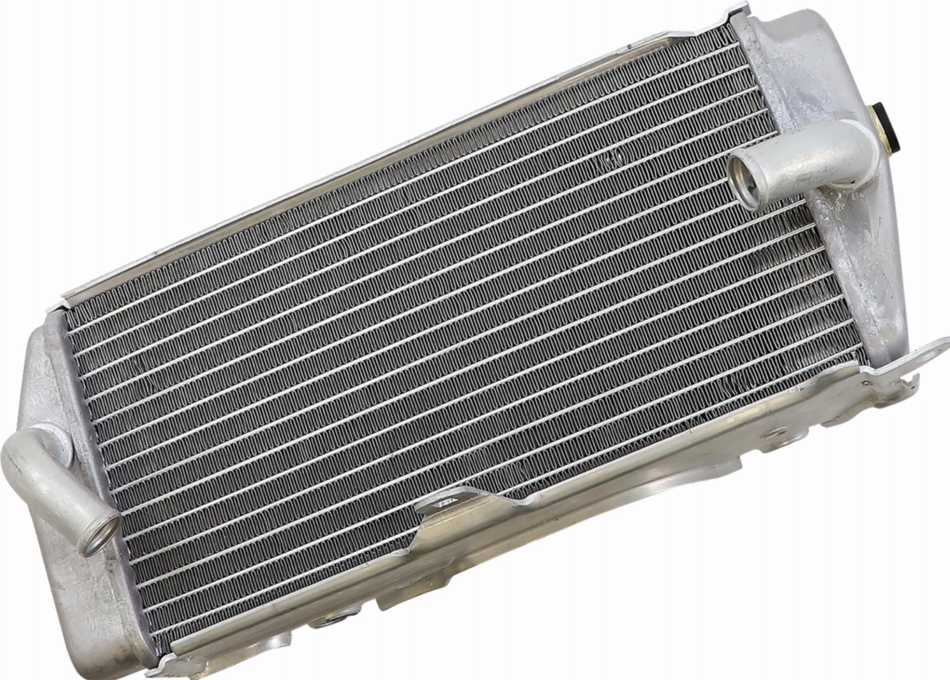 Originele KSX linkerradiator voor de Honda CRF250R (2016-2017). Gemaakt van grijs aluminium voor optimale warmteafvoer en motorkoeling. Hoogwaardig en duurzaam product. Ideaal voor het vervangen van een beschadigde radiator of het verbeteren van de prestaties van uw motorfiets.