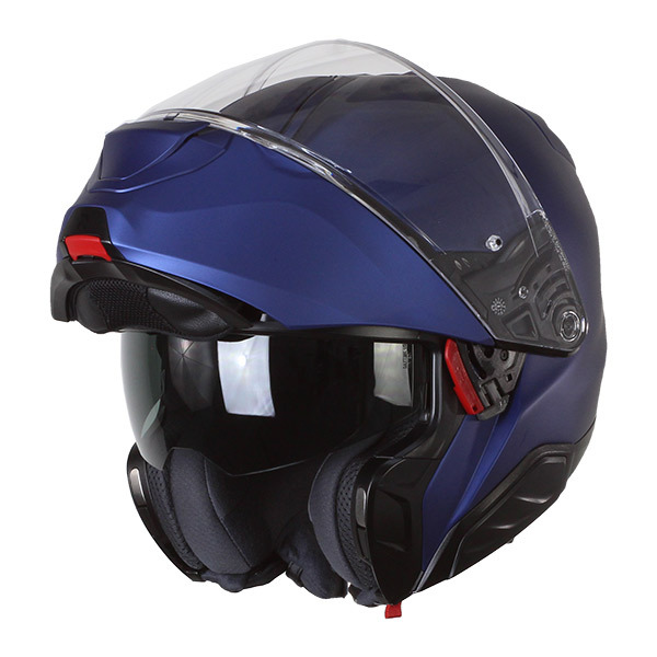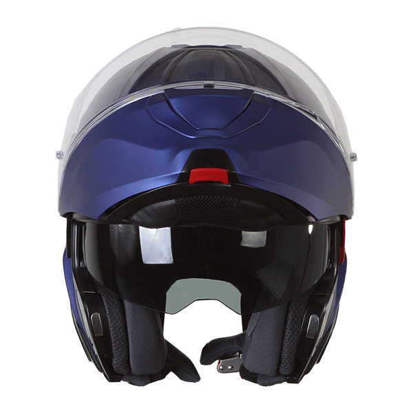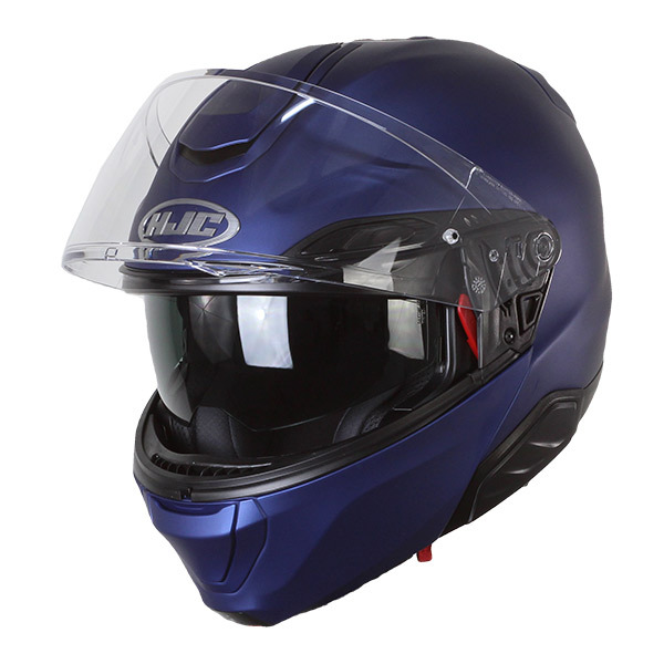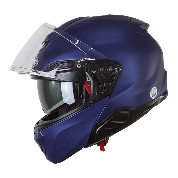 De hoogwaardige HJC RPHA91 modulaire helm in mat metallic blauw is voorzien van een geïntegreerd zonnevizier en een Pinlock-ready vizier. Ref: 147335