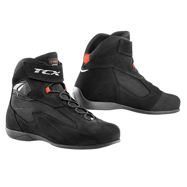 Korte zomerse motorlaarzen met een sportieve stijl van de Italiaanse fabrikant TCX. Gemaakt van voornamelijk suède leer, met zeer slijtvaste stoffen inzetstukken.