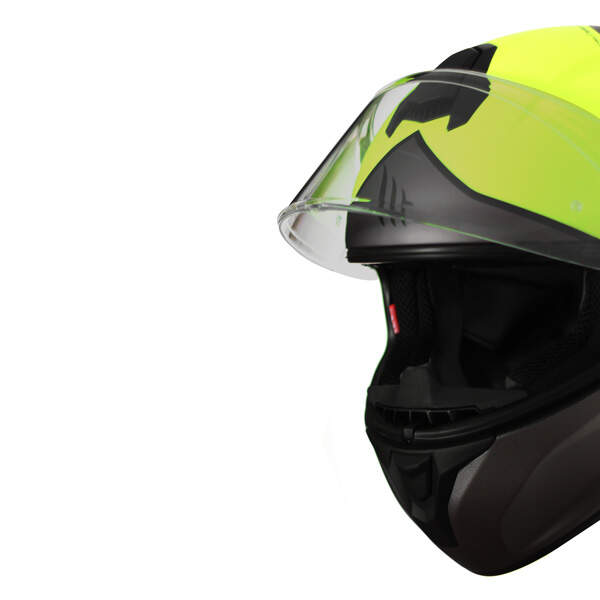 De beste technologie van MT Helmets in deze Targo Rigel A3 integraalhelm voor motorfietsen. De gebruiker kan de hoogte van het bovenste vizier aanpassen en het zelfs verwijderen.