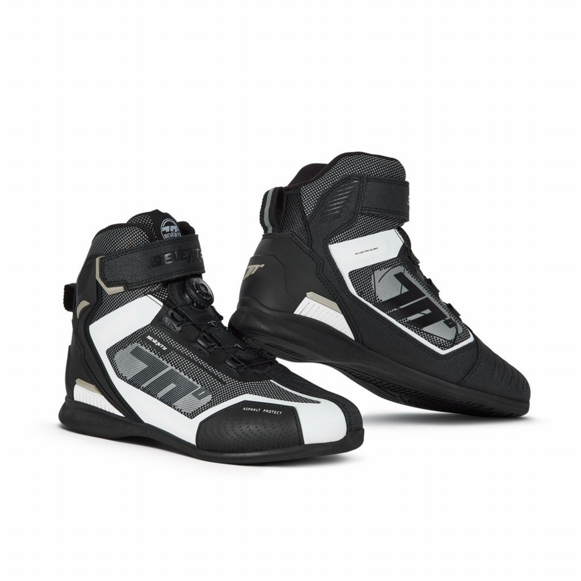 Seventy SD-BR3 racelaarzen in zwart-wit met een hoge schacht van PU-leer en micro-ademend nylon. Ref. SD3100302