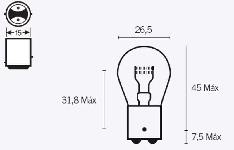 Vervangende lamp voor Bilux motorfietsen en scooters 12V 21/5W, 12V gloeilampen met BAY15d fitting.