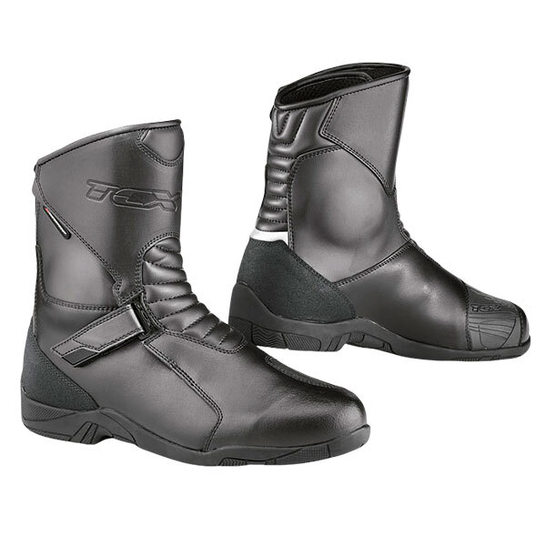 Waterdichte motorlaarzen voor op de weg van de Italiaanse fabrikant TCX. Gemaakt van leer, met verstevigingen en een micro-geïnjecteerde klittenband- en gespsluiting. Touringlaars die voldoet aan de EN13634-normen.